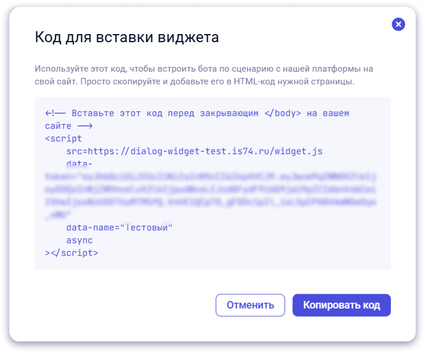 После сохранения система автоматически сгенерирует HTML-код для вставки виджета на сайт.