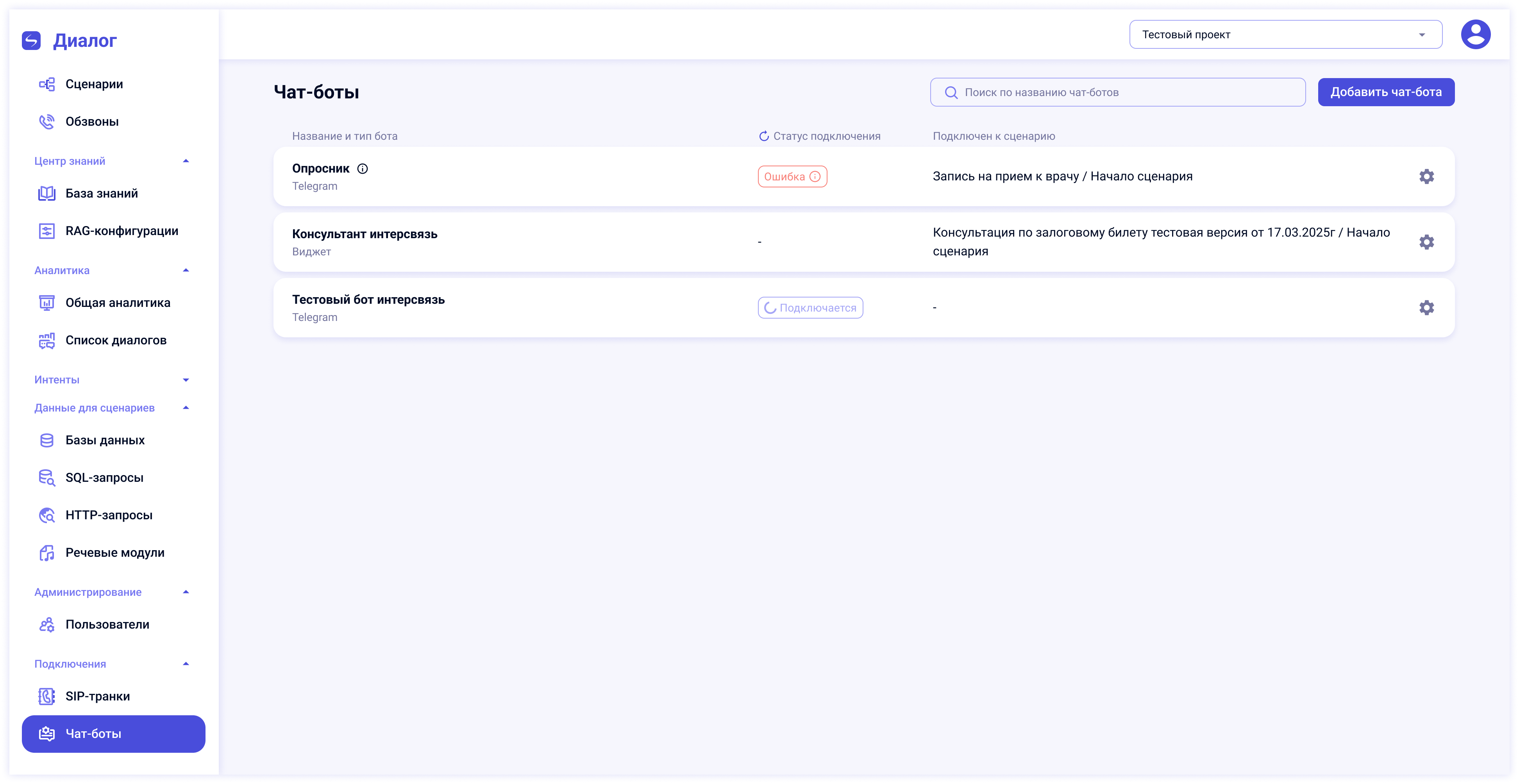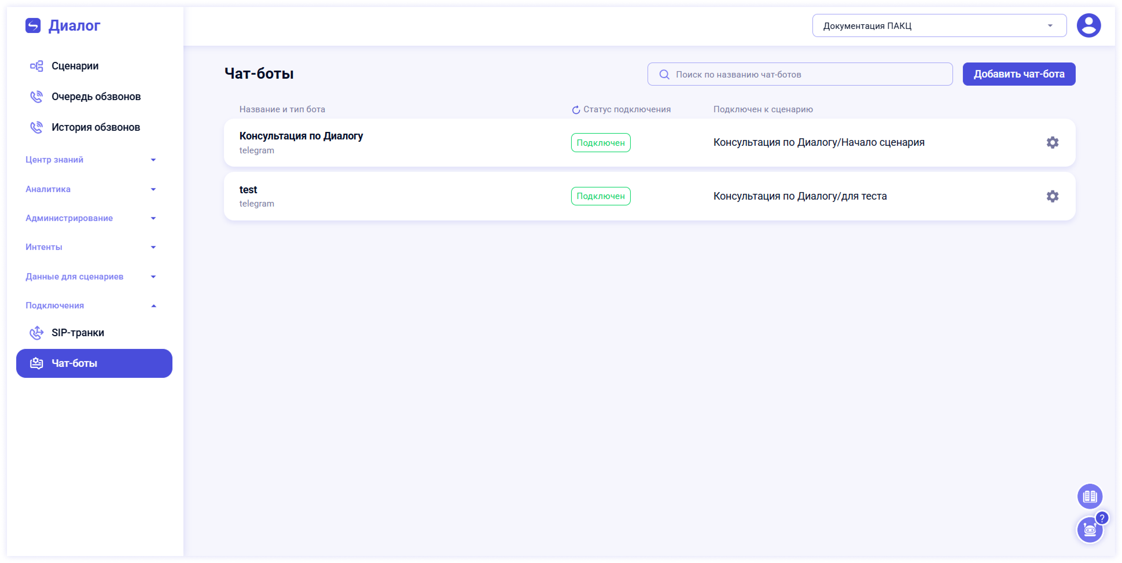 Настройка доступна только пользователям, имеющим права на создание и редактирование чат-ботов.