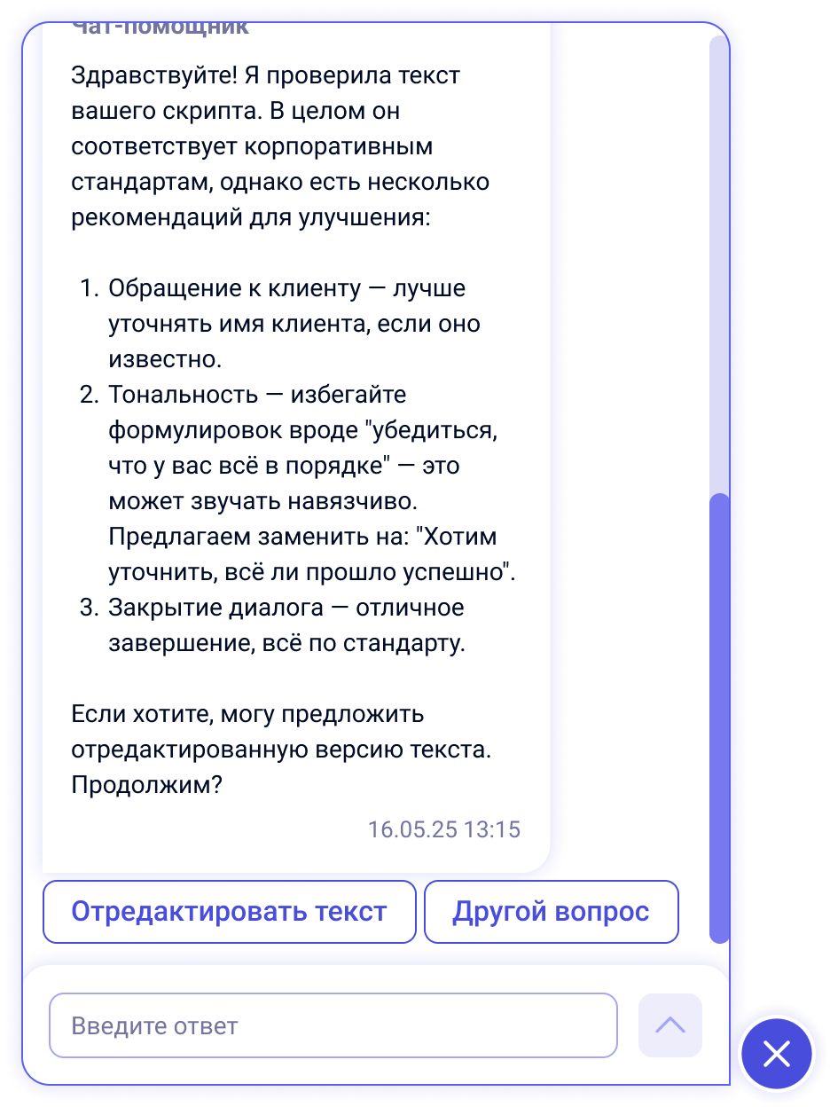 Нажатие кнопки перезапускает диалог без необходимости обращаться к разработчику.